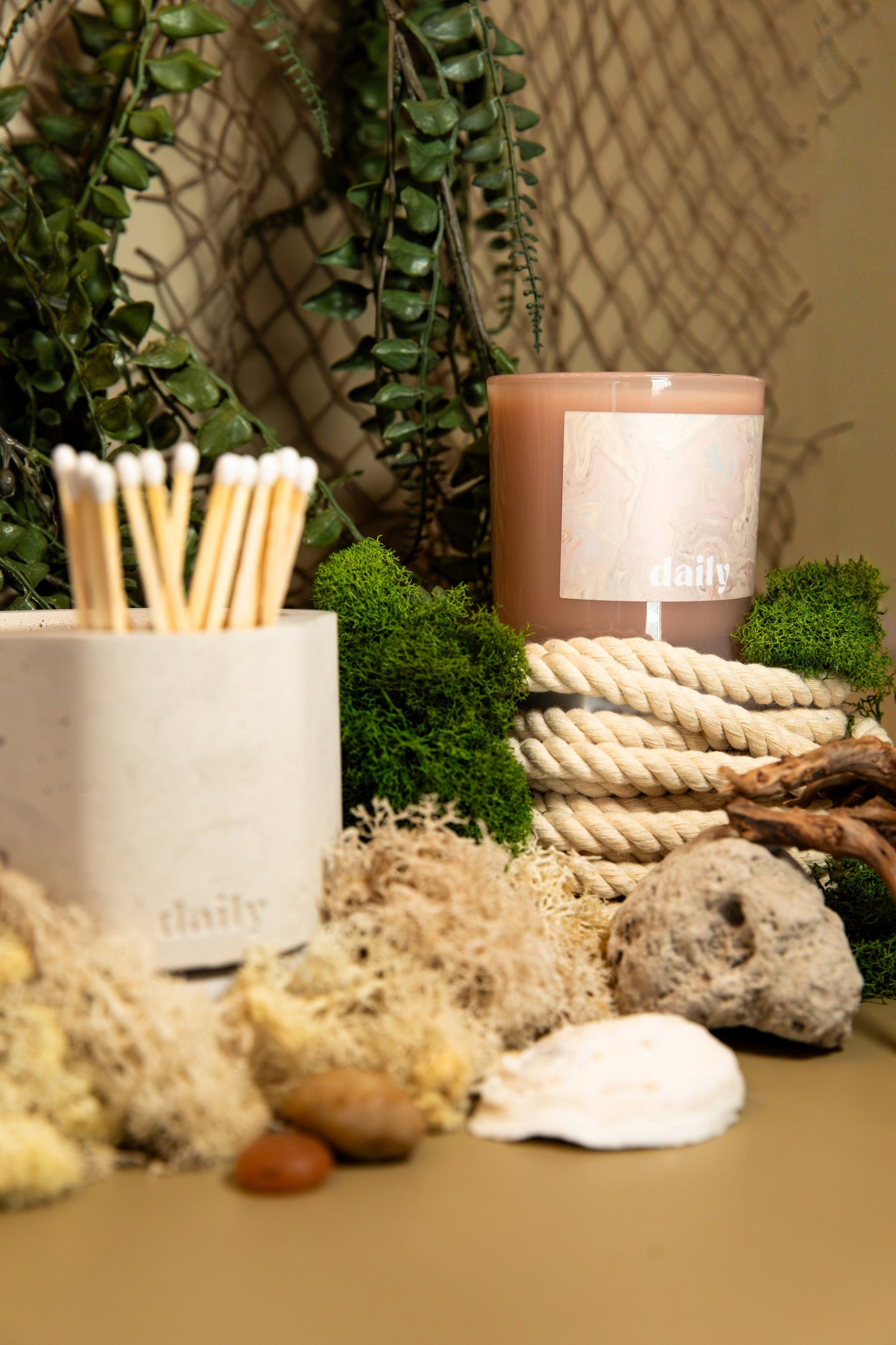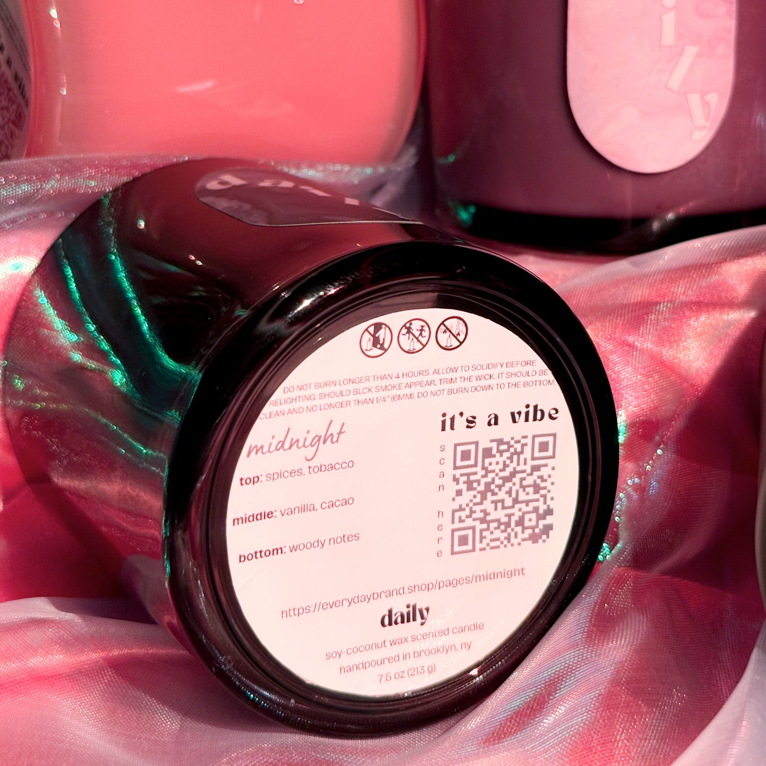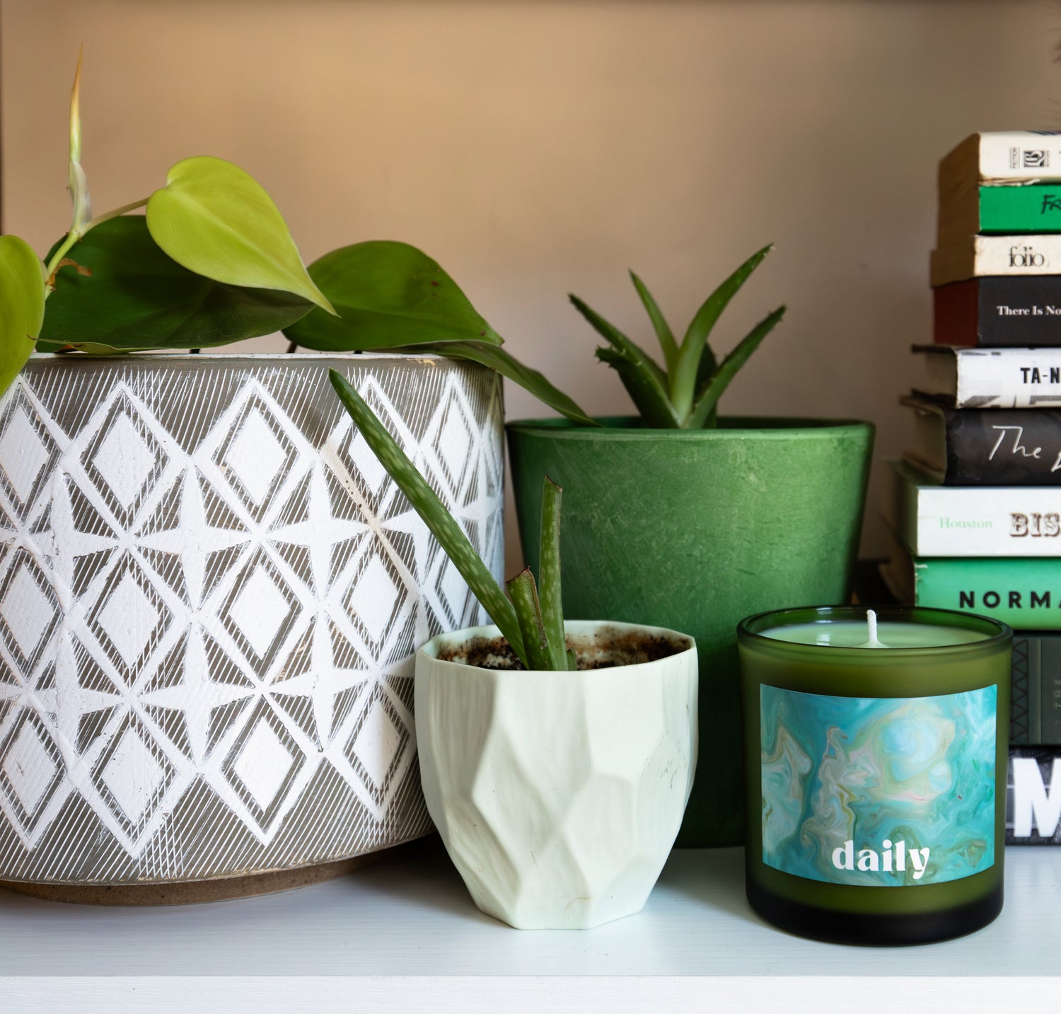 daily’s home fragrance products are a whole vibe. scan the QR code on the bottom of your candle to find a playlist and mocktail recipe to set the mood before you light up.