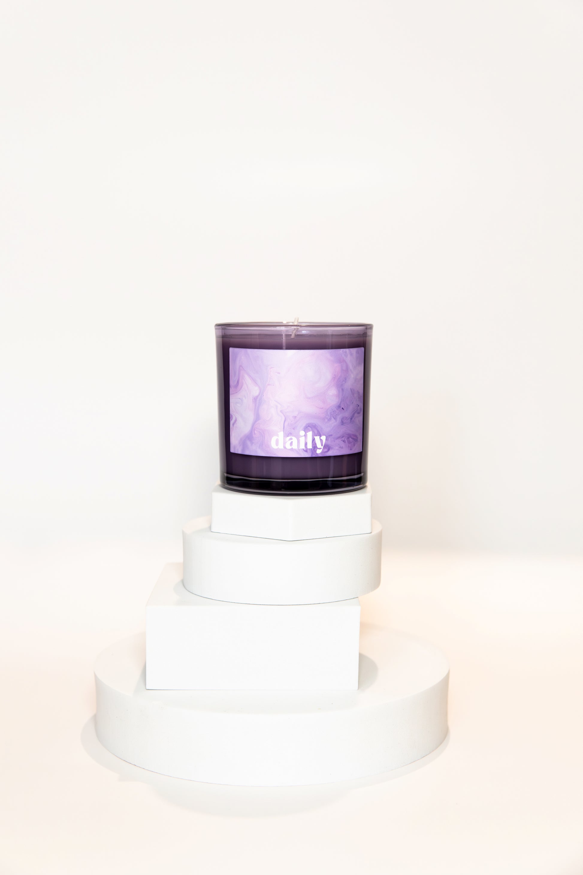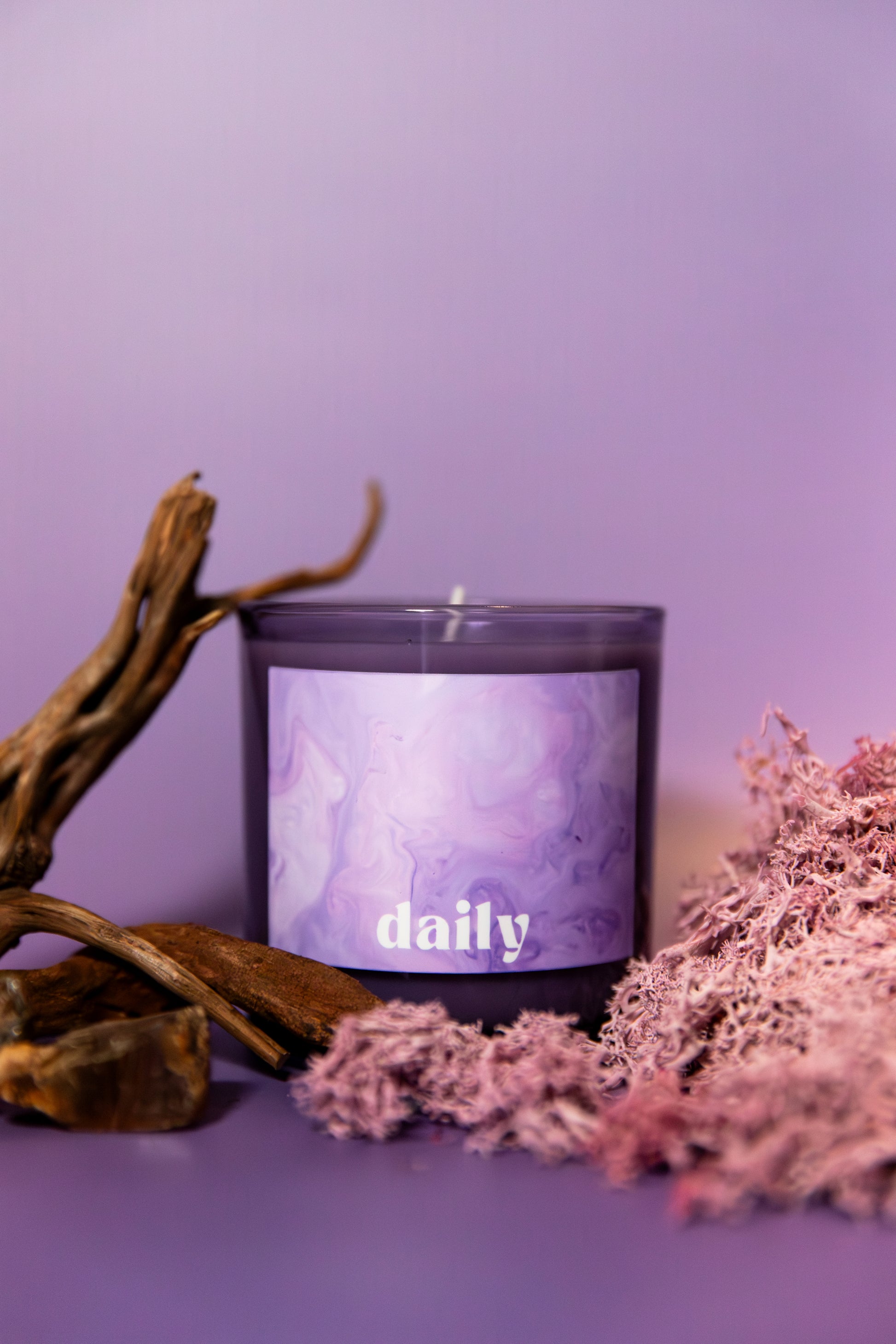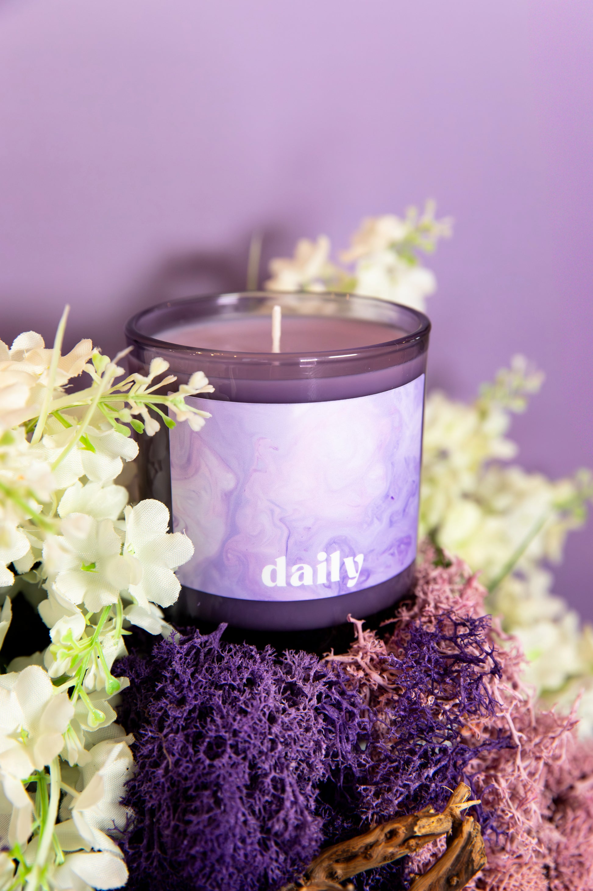 available in six moods and two sizes, daily candles are made from a proprietary blend of luxury fragrance oils, a soy-coconut wax blend, and all-natural vegan-friendly dyes.
