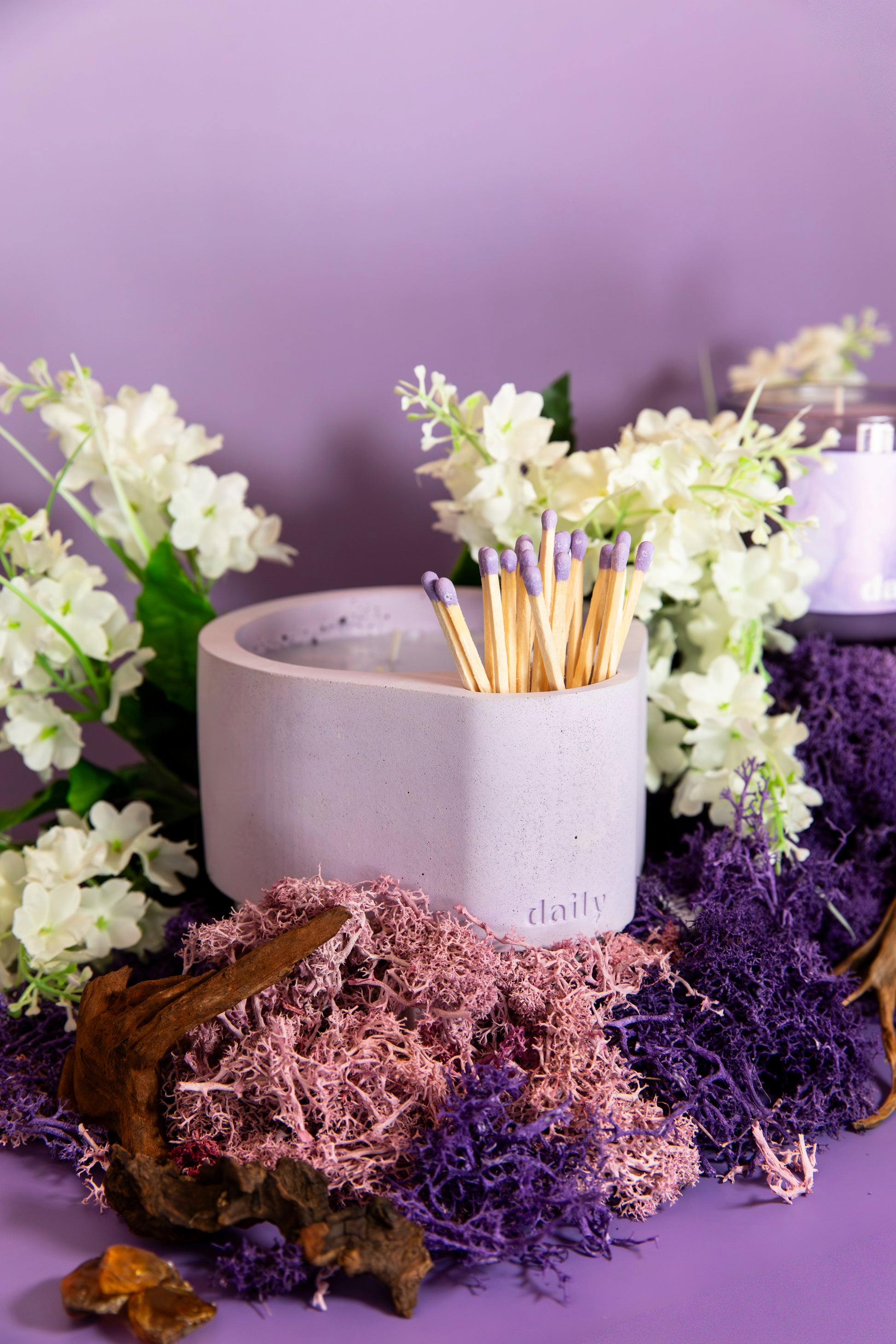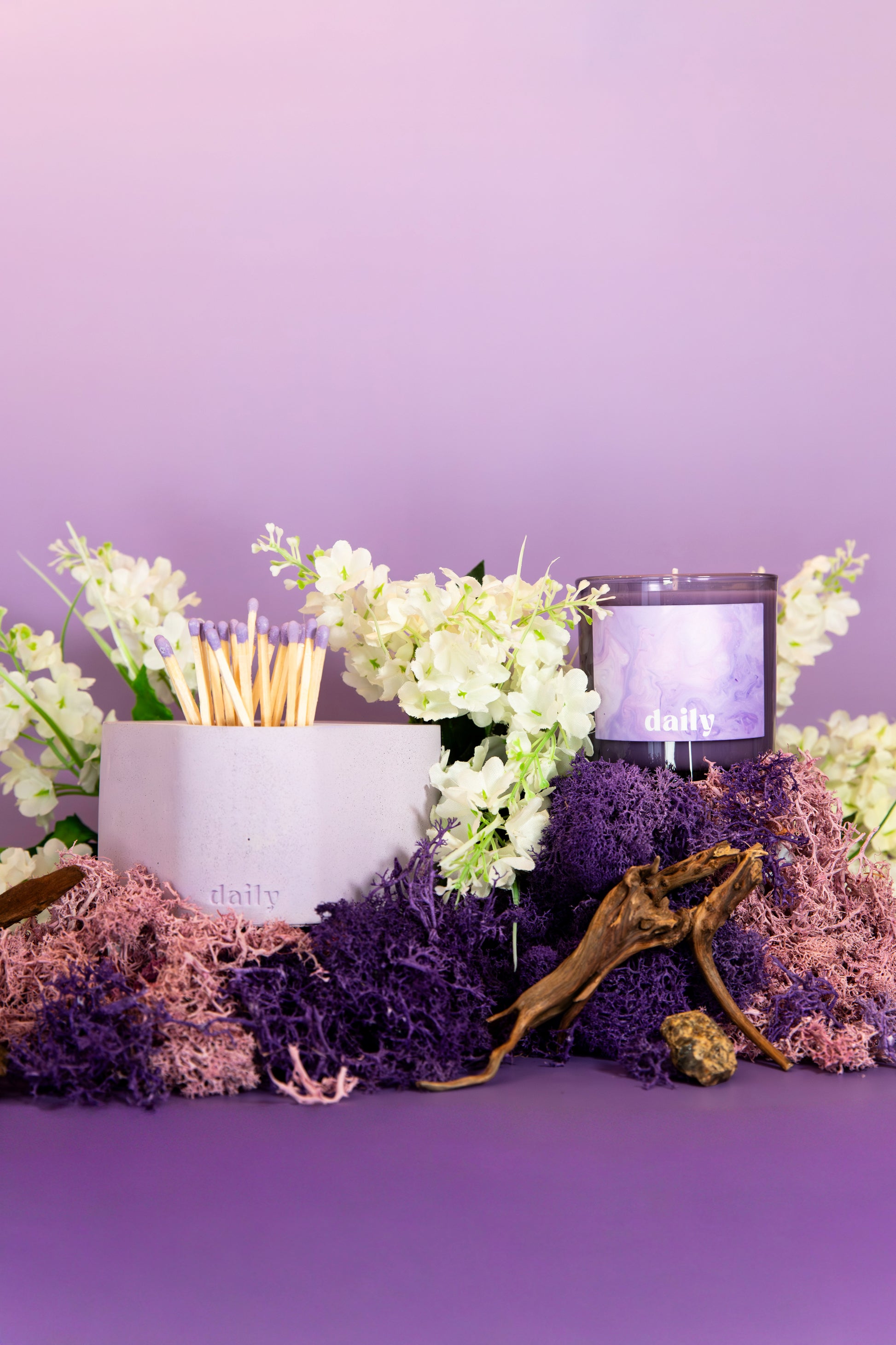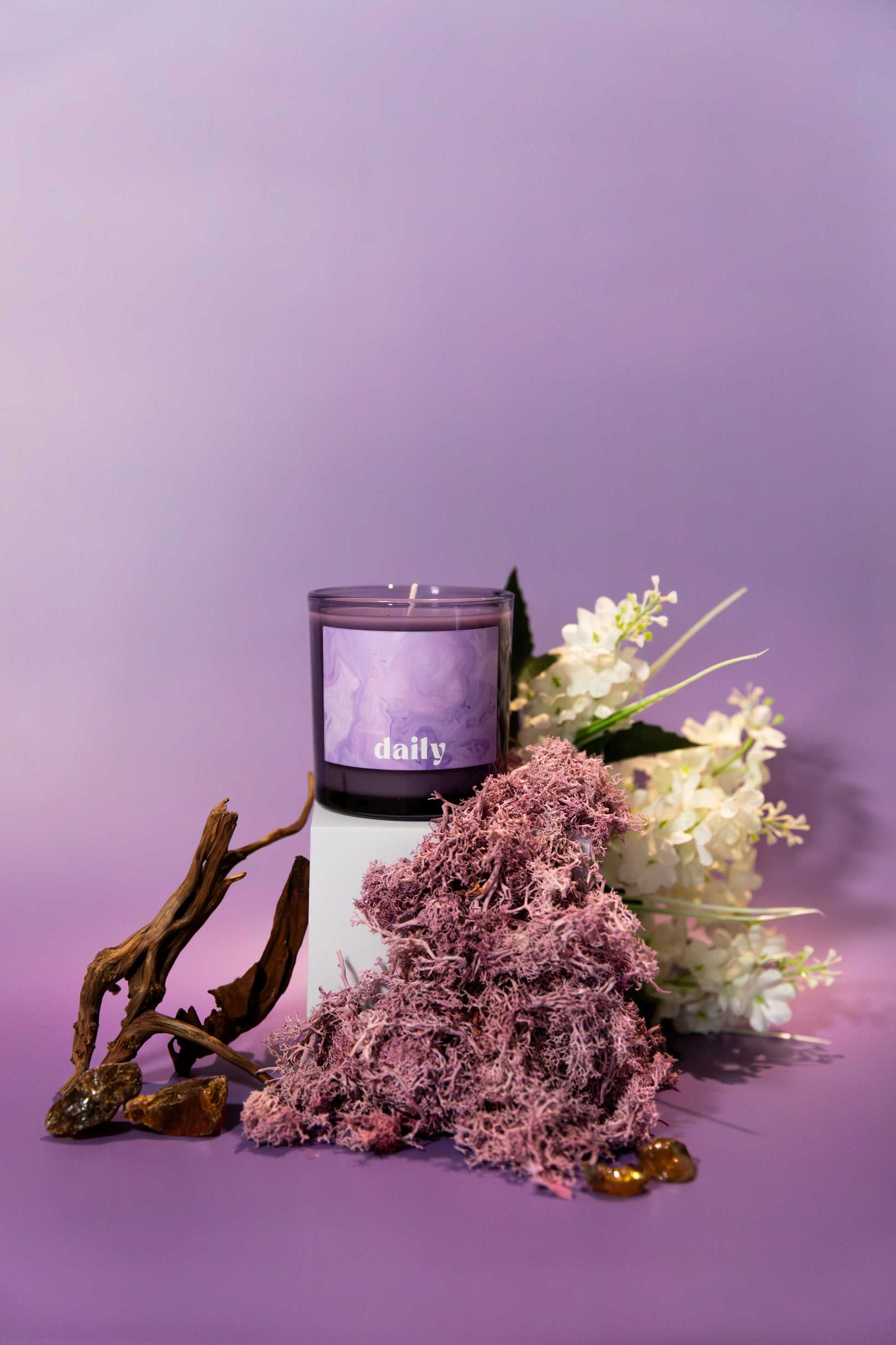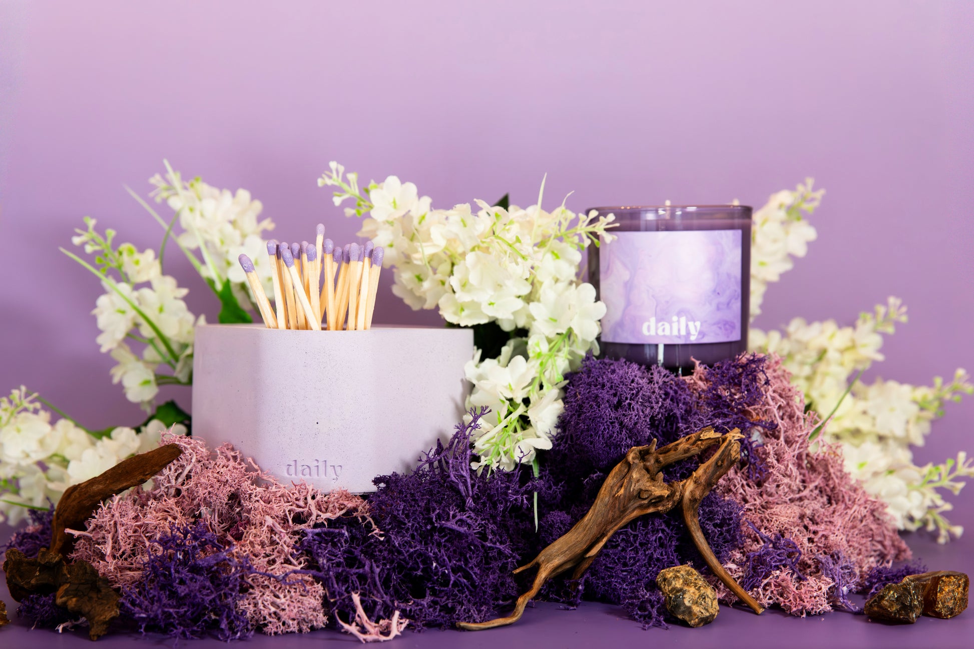 available in six moods and two sizes, daily candles are made from a proprietary blend of luxury fragrance oils, a soy-coconut wax blend, and all-natural vegan-friendly dyes.