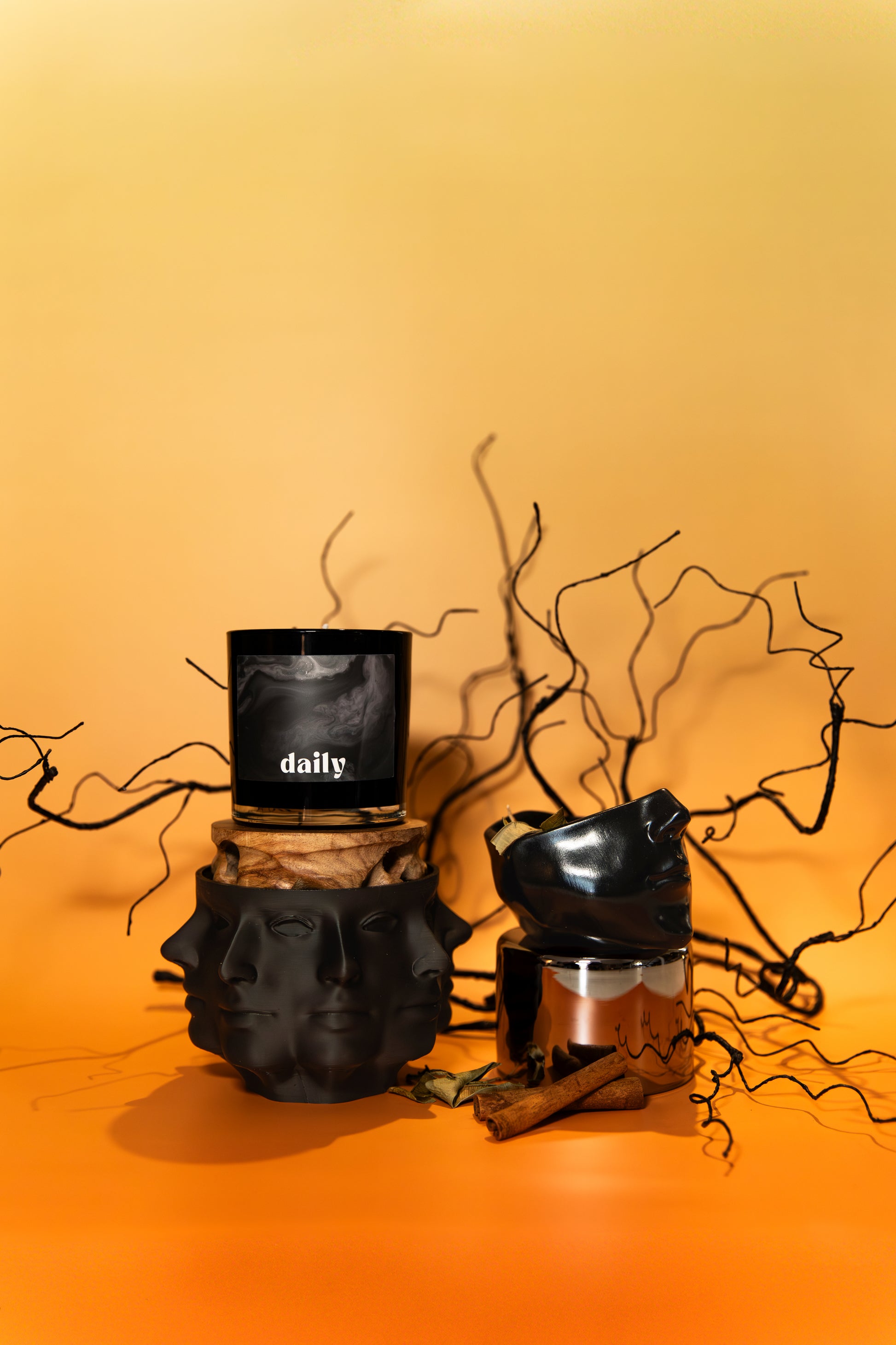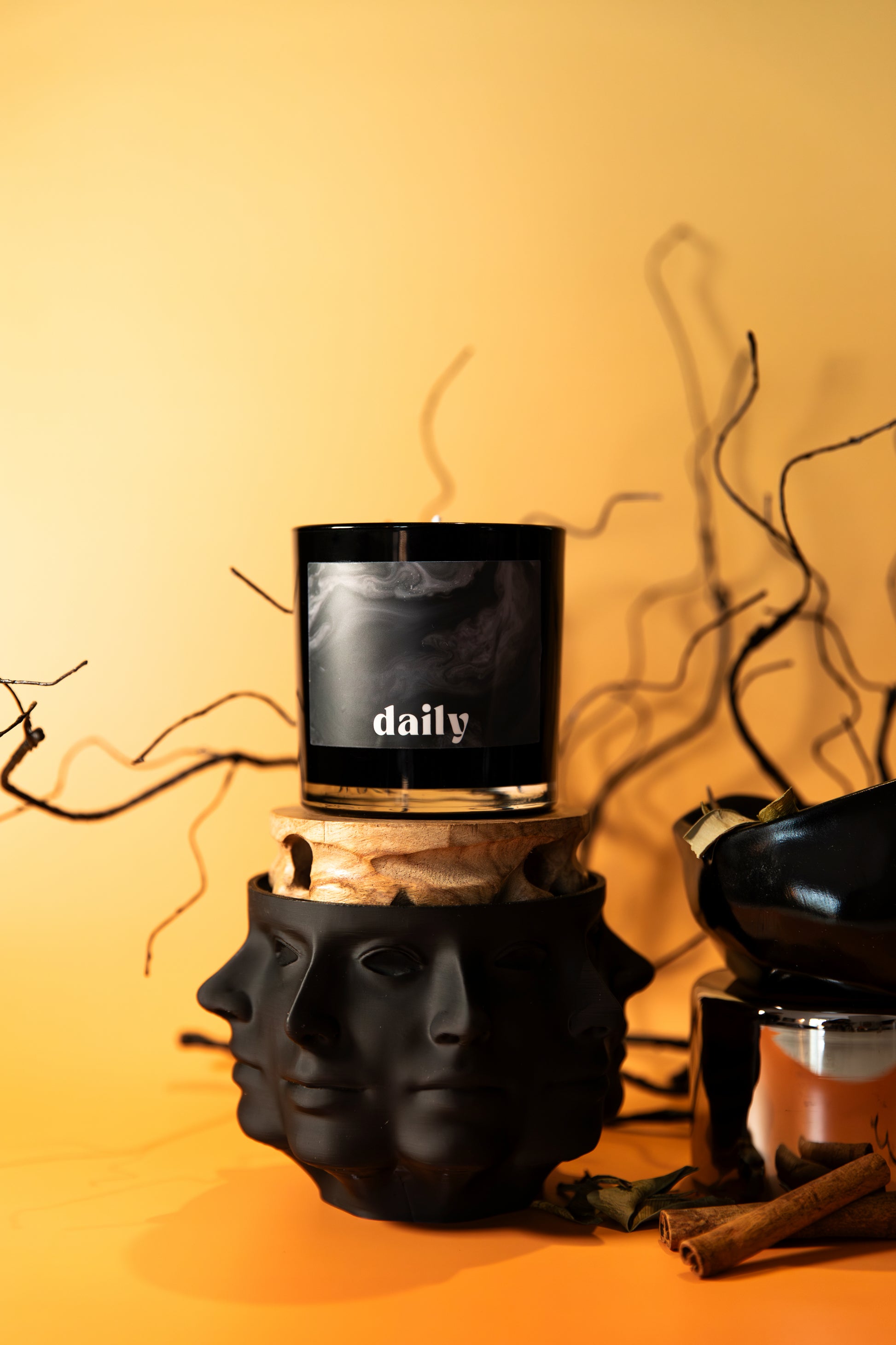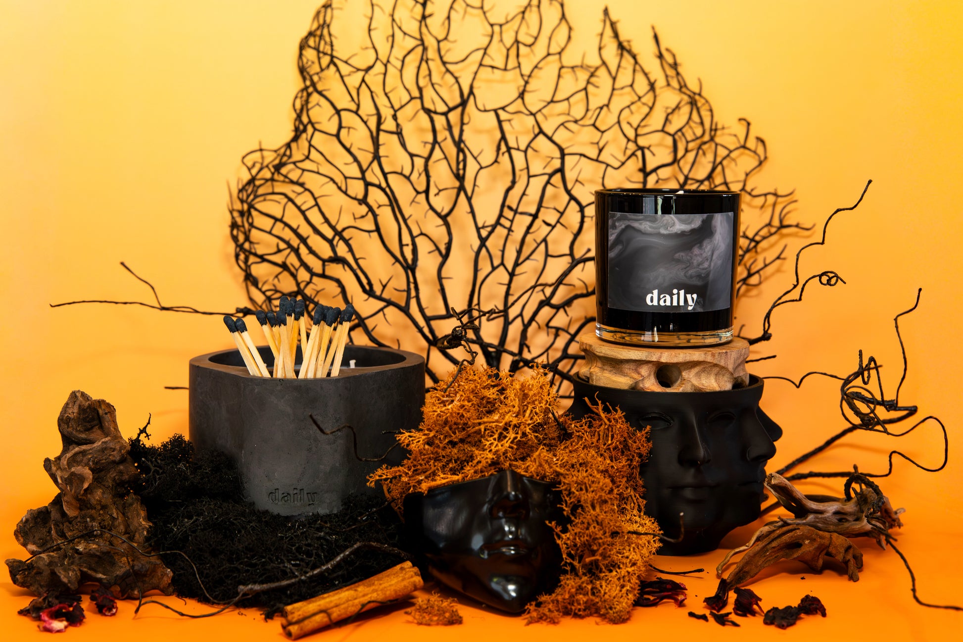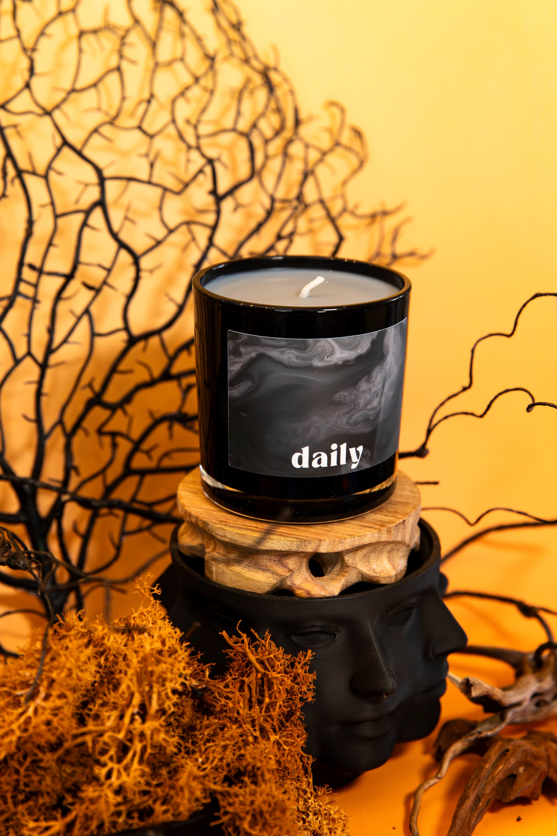 available in six moods and two sizes, daily candles are made from a proprietary blend of luxury fragrance oils, a soy-coconut wax blend, and all-natural vegan-friendly dyes.
